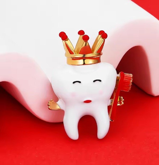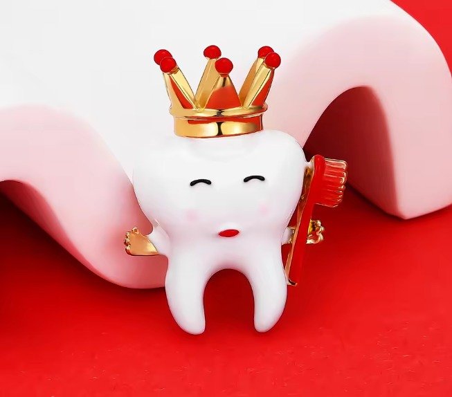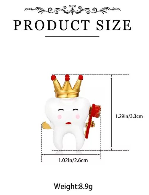 Add a royal touch to your dental-themed attire with the Crown & Teeth Shape Brooch. Featuring a charming tooth wearing a crown, this enamel brooch is the perfect blend of fun and elegance. Whether you’re a dental professional or just love quirky accessories, this brooch is a delightful addition to your collection.