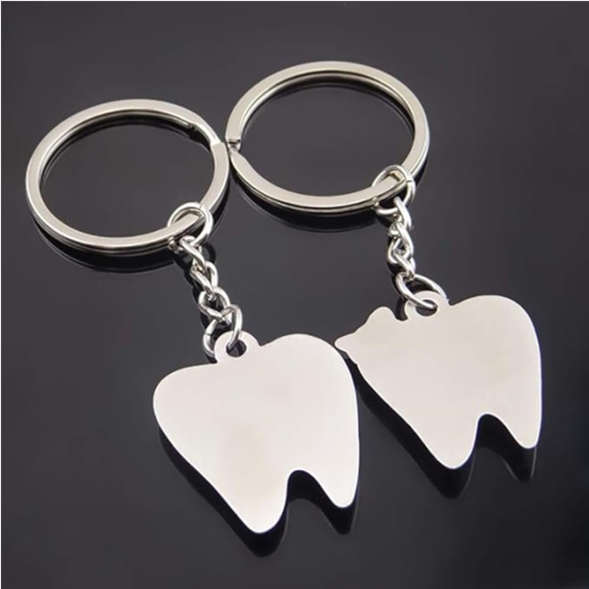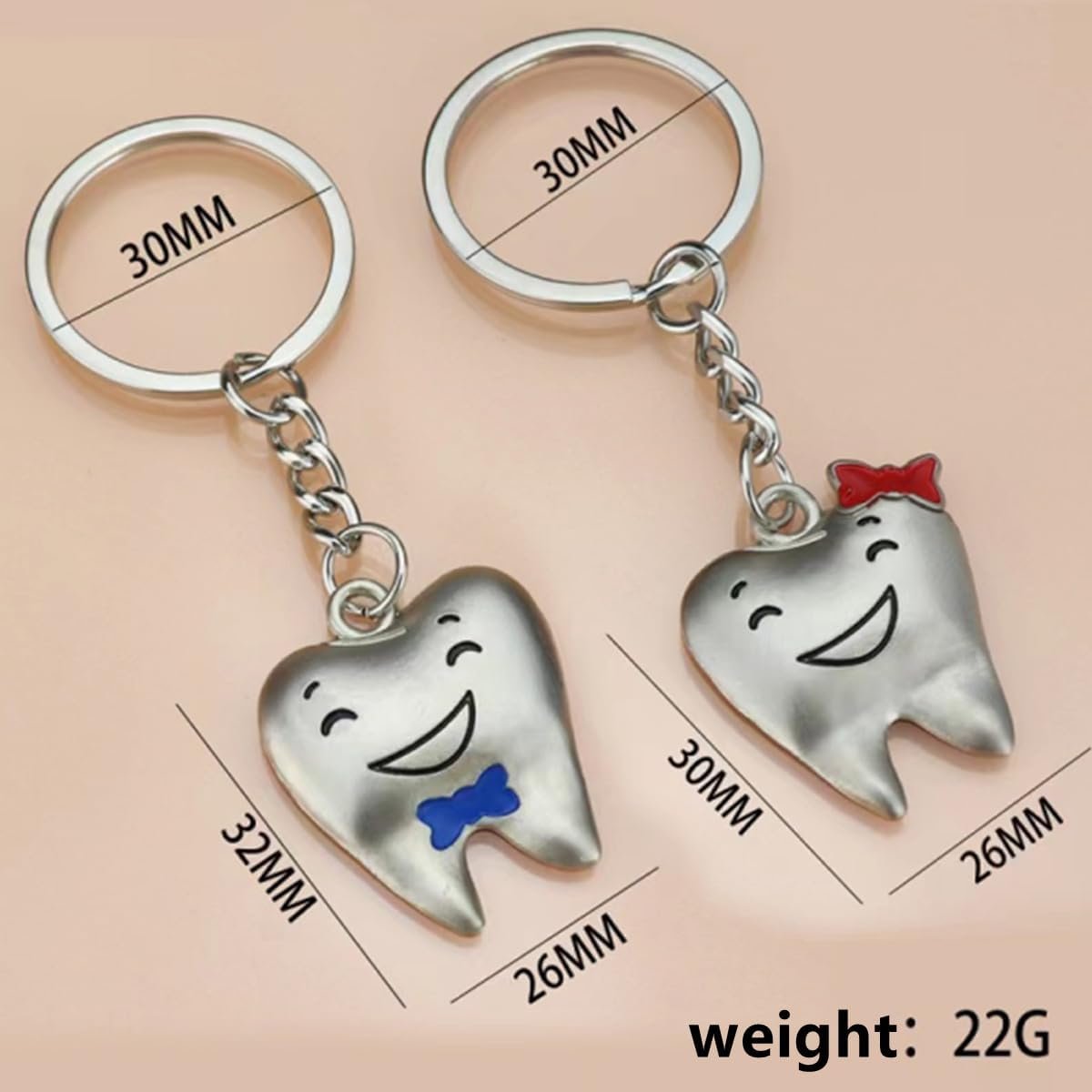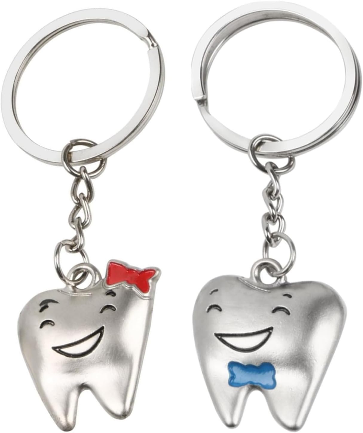 This adorable Tooth Couple Keychain Set features two smiling teeth with charming bow details Ñ one with a red bow and the other with blue. Made from durable metal, these cute characters bring fun to your keys, bags, or dental accessories. A perfect gift for dentists, dental students, clinic staff, or couples in dentistry.